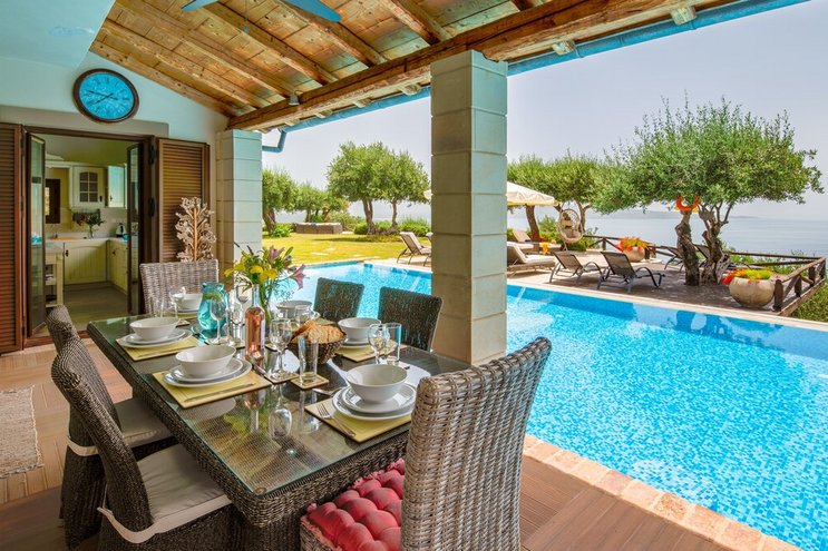 Atemberaubender Meerblick, ausgezeichnete Restaurants im Freien und ein herrlicher Infinity-Pool sind nur einige der Highlights der Villa Sterna, einem wunderschönen Anwesen in der Nähe der Küste von Korfu.