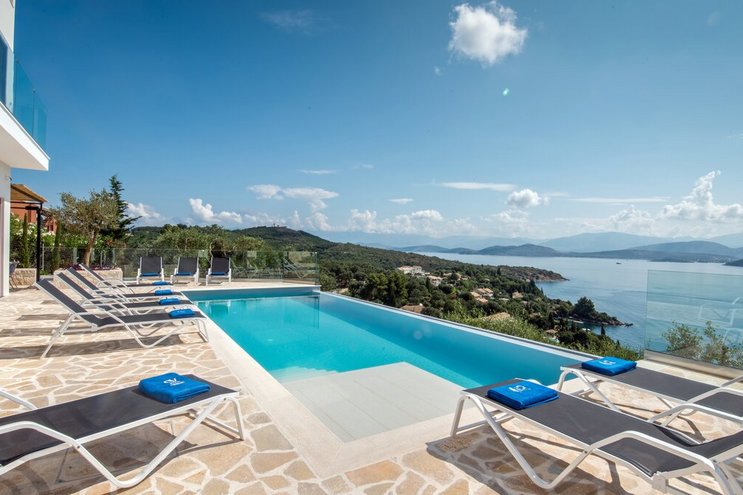Die moderne und stilvolle Harmonia ist eine wunderschöne Villa auf Korfu mit einem großen Infinity-Pool, hervorragenden Wohnbereichen im Freien und einem unglaublichen Meerblick.