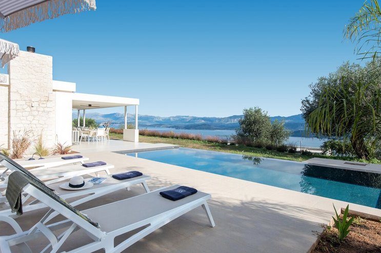 Villa Amavi ist ein stilvoller Rückzugsort mit drei Schlafzimmern auf Korfu, der Privatsphäre, Abgeschiedenheit und einen atemberaubenden 180-Grad-Blick über das Wasser in Richtung Albaniens Berge verspricht.