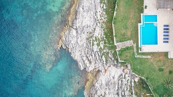 Mit Felsenbaden im wahrsten Sinne des Wortes „vor der Haustür“ und den schönen Stränden von Kanoni und Bataria, die nur fünf Minuten zu Fuß entfernt sind, verfügt diese sehr komfortable Familienvilla über eine beneidenswerte Lage und macht das Beste daraus mit Terrassen und Veranden auf drei Ebenen. Aller bieten einen fantastischen Blick über die Bucht bis hin zu Albaniens Küstengebirge und sind so eingerichtet, dass sie einen weitläufigen Wohnraum im Freien bilden. Im Erdgeschoss, nur ein paar Meter über dem Meer, wird ein schöner Swimmingpool durch ein großzügiges Kinderbecken verbunden und von der Haupt-Sitz- / Essveranda aus überblickt, wo große Bögen die Aussicht rahmen. Deren sonnige obere Terrasse wird von zwei großen Schlafzimmern geteilt, und das Doppelzimmer in der obersten Etage verfügt über einen eigenen Balkon. Jedes der vier Schlafzimmer verfügt über einen Fernseher und eine Klimaanlageund Das Haus verfügt über ein Spielzimmer und ein offenes Wohn-/Esszimmer. Der Aktea liegt auf der Landzunge, die von den Festungsruinen von Kassiopi gekrönt wird, und ist nur einen kurzen Spaziergang entlang einer ziemlich ruhigen Straße von den Annehmlichkeiten und dem Nachtleben des Resorts entfernt, was es zu einer besonders beliebten Wahl für Familien mit Teenagern macht.