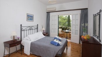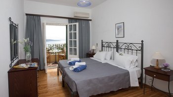 Das sehr fotogene Kasometria ist von bunten Kaskaden aus nachlaufenden Blumen und leuchtenden Bougainvillea umhüllt und erstreckt sich über mehrere Ebenen, so dass jedes einzelne Apartment von seinem eigenen Balkon oder seiner Terrasse aus einen herrlichen Meerblick genießen kann. Angela befindet sich im ersten Stock und offen zu einer Bar-Küche und es gibt zwei Schlafzimmer, jedes mit Klimaanlage. Eines schöne Wahl für Familie oder Freunde, Kasomitria ist unprätentiös, komfortabel eingerichtet und erschwinglich. Dessen sechs Apartments teilen sich einen Swimmingpool und ein Kinderplanschbecken auf einer sonnigen Terrasse mit Meerblick und einen Grillplatz. Mit herrlichem Blick auf die Bucht und die dahinter liegenden Berge ist es 10 Minuten zu Fuß vom Kerasia Strand und 15 Minuten von St. Stephano entfernt. Zwei oder mehr der Wohnungen könnten hier zusammen gebucht werden, und die gesamte Villa würde achtzehn beherbergen.