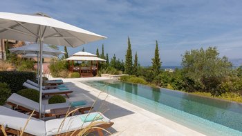 Eine atemberaubende Immobilie mit fünf Schlafzimmern an der glamourösen Nordostküste Korfus, Antheia ist eine bezaubernde Ergänzung zu unserem ABOVE-Portfolio.