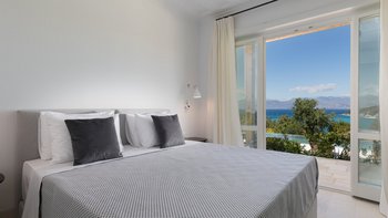 Antheia, ein wunderschönes Anwesen mit Blick auf das Meer, ist ein luxuriöses Haus in einer vollkommen privaten Umgebung, während Annehmlichkeiten und ein hübscher Kiesstrand in Avlaki nur 1 km entfernt sind. Denen Villa ist hervorragend entworfen und aus lokalem Stein gebaut, modern und geräumig. Ein großer Wohn- und Essbereich blickt auf das Meer durch raumhohe Fenster, die sowohl mit bequemen Sitzgelegenheiten und auch mit einem langen Esstisch im Innenbereich ausgestattet sind. Deren Küche des Küchenchefs ist in einem schönen Himmelblau mit modernen Fliesen und Geräten wie einer Nespresso-Maschine und einem Weinkühlschrank eingerichtet. Ein Frühstückstisch blickt auf die Terrasse, die mit einem Esstisch im Freien und Rattansitzen zum Entspannen ausgestattet ist.