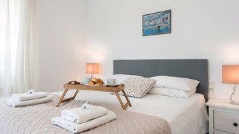 Die Lage ist privat und friedlich, fast an der Spitze eines Vorgebirges eines Olivenhains, mit herrlichem Blick direkt auf das Meer und die Bucht hinunter zum Dorf und mit einem Hauch von wunderbar ungestörtem Nichtstun. Dennoch ist diese hübsche rosafarbene Villa nur zehn Minuten zu Fuß von den Geschäften, dem Strand und den Restaurants am Wasser des kleinen St. Stephano und eine kurze Fahrt vom Tennisplatz in Kassiopi und ausgezeichneten Wassersportmöglichkeiten an der breiten Bucht von Kalami entfernt. Deren einstöckige Villa ist eine gute Wahl für einen Familienurlaub und verfügt über ein Doppel- und zwei Zweibettschlafzimmer, jedes mit Klimaanlage.