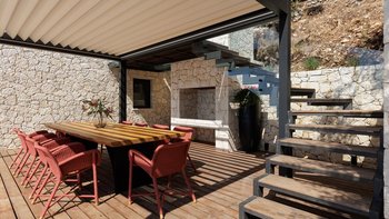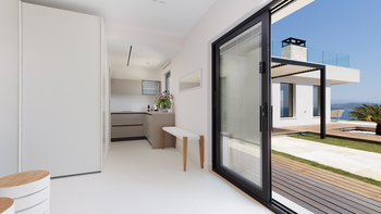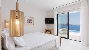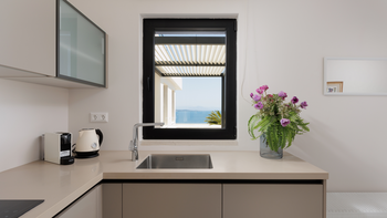 Harmonia ist eine geräumige und elegante Villa mit Blick auf die herrliche Meereslandschaft von Korfu. Denen Innenräume sind hell und einladend, reichlich Tageslicht und elegant eingerichtet. Im Erdgeschoss finden die Gäste einen luftigen offenen Grundriss Wohn- und Essbereich sowie eine elegante und schwarze voll ausgestattete Küche. Dieser Etage verfügt auch über zwei schöne Doppelschlafzimmer mit Dusche en suite sowie ein Gästeschlafzimmer mit Küchenzeile und gemütlichen Sofas, die als Betten gemacht werden können. Im Obergeschoss befinden sich zwei weitere Doppelschlafzimmer, von denen jedes auf einen gemeinsamen Balkon mit Blick auf die herrliche Aussicht führt. Ideal für Wellness-Retreats, verfügt die Villa auch über einen brillanten Fitness- und Wellnessbereich.
