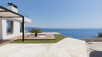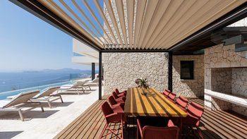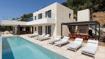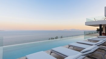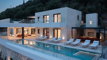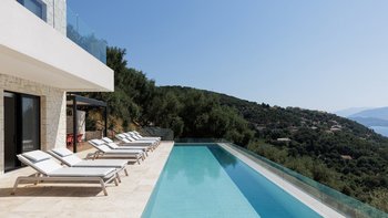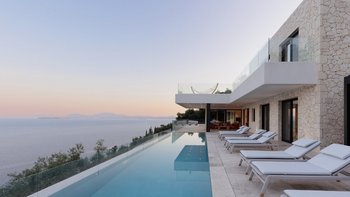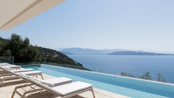 Die moderne und stilvolle Harmonia ist eine wunderschöne Villa auf Korfu mit einem großen Infinity-Pool, hervorragenden Wohnbereichen im Freien und einem unglaublichen Meerblick.
