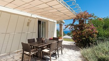 Beim Ausheben der Fundamente dieser hübschen Villa wurde ein massiver Schleifstein oder „Lithari“ ausgegraben, der dem Haus seinen Namen gibt und nun einen Blickpunkt in den wunderschönen Gärten bildet, die es umgeben. In einer klassischen korfiotischen Landschaft mit Oliven-, Feigen- und Granatapfelbäumen erhebt sich dieses große Familienhaus über seinem Freiformpool und blickt von einer überdachten Veranda, die sich entlang des Gebäudes erstreckt, auf eine ruhige Aussicht auf die Landschaft, die Küste und die Bucht. Mit kühlen Fliesenböden und hohen Dachsparren, hat ein geräumiges Wohn- / Esszimmer Türen zu diesem Wohnbereich im Freien und zu einer herrlichen Pergola. Zwei Schlafzimmer im Erdgeschoss öffnen sich ebenfalls zur Veranda, während das Haupt-Doppelzimmer im ersten Stock ein zusätzliches Maß an Privatsphäre genießt, mit einem eigenen schattigen Balkon. Eine breite Treppe und ein leicht abfallender Weg verbinden die Veranda jeweils mit dem 10-Meter-Pool, wo Rasenflächen, Liegen und eine Liege mit schönen blühenden Sträuchern abgeschirmt sind. Und diese schöne kleine Bucht der Ruhe ist etwas mehr als 1 km von Kassiopi mit Restaurants, Geschäften, Nachtleben und Bootsverleih und 3 km vom Avlaki-Strand entfernt.