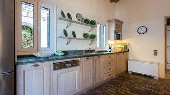 Zweifellos steht der Mittelpunkt dieser entzückenden Familienvilla auf Korfu. Dessen geräumige Terrassen umrahmen einen Freiform-Infinity-Pool und einen Jacuzzi, die in den kühleren Monaten beheizt und während der ganzen Saison unwiderstehlich einladend sind. Ausgestattet mit vielen Sonnenliegen, wird der Pool von einem Sitzbereich im Freien auf der schattigen vorderen Terrasse und einem Esszimmer im Freien und einem Grill direkt von der Küche aus gesehen, die jeweils den Komfort des offenen Wohn- und Esszimmers im Haus widerspiegeln. Dieser große Villa ist im gesamten Gebäude klimatisiert und bietet einen Kochservice für echte Entspannung. Sie bietet eine überraschend intime Atmosphäre, die durch eine geschmackvolle Einrichtung in sanften Naturtönen unterstrichen wird.