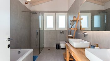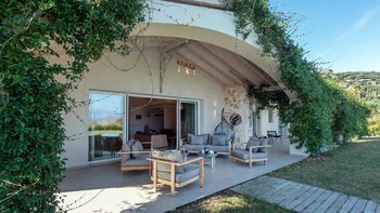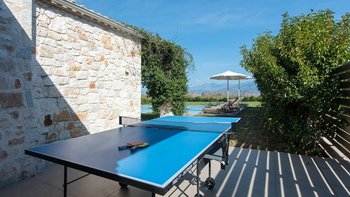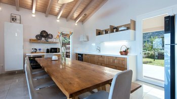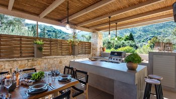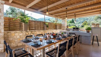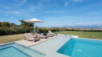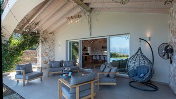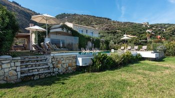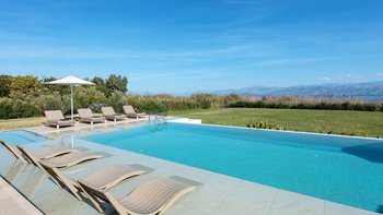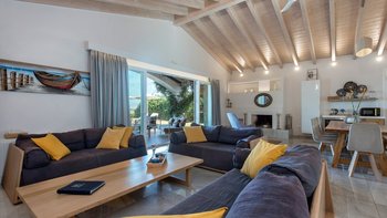 Das Nero Beach House befindet sich in einer unvergleichlichen Strandlage und bietet einen weitreichenden Blick über das Meer bis hin zu den Bergen Albaniens. Dieses Anwesen wurde speziell für Familien und Gruppen entworfen und ist geräumig genug, dass jeder seinen eigenen Platz hat, um drinnen oder draußen zu entspannen. Der 12 m lange Infinity-Pool ist von attraktiven Holzliegen umgeben, um sich in der Sonne zu sonnen, und um das Haus herum bietet eine überdachte Terrasse mit Sitzbereich viel Schatten, um die Aussicht zu genießen.