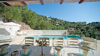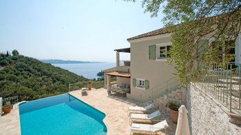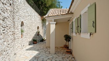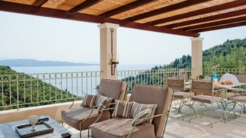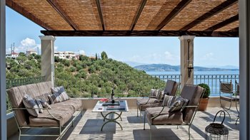 Diese wunderschön eingerichtete Drei-Bett-Villa mit Charme, Charakter und modernem korfiotischen Stil genießt den Meerblick an der Nordostküste in der Nähe von Agni Strand und beliebten Tavernen.