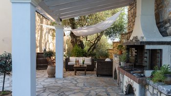 Ein traditionelles korfiotisches Landhaus, in herrlicher Nähe zum Meer, ist diese entspannende Villa in einem ruhigen Inseltempo eingehüllt. Innerhalb des Hauses ist die Unterkunft großzügig bemessen und einfach für Komfort eingerichtet. Im Erdgeschoss ist das geräumige Wohn-/Esszimmer kühl und hell, mit frischem weißem Dekor und Türen zu einer Terrasse im Freien. Deren obere Etage ist eine private Oase für das Schlafzimmer mit Doppelbett, das sich auf einen großen Balkon mit gepolsterten Sitzgelegenheiten und herrlicher Aussicht öffnet; während drei Zweibett-Schlafzimmer das untere Erdgeschoss einnehmen. Im Außenbereich gibt es mehrere Terrassen, die fast von morgens bis abends die Sonne einfangen, eine schöne Veranda, die natürlich in üppigem Grün abgeschirmt ist und zum Entspannen und Essen eingerichtet ist, eine ummauerte und sonnenverwöhnte Terrasse umschließt den acht Meter langen Swimmingpool und ein Grillplatz ist vom Haus aus leicht zu erreichen. Ein Pfad vom Garten führt hinunter zu einer Badeplattform auf der rechten Seite des Meeres, wo Olympia sich das Wasser mit der Schwestervilla Gallini teilt. Der Strand von Kerasia und der Hafen von St. Stephano sind beide leicht zu Fuß erreichbar.