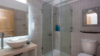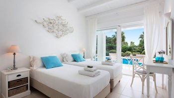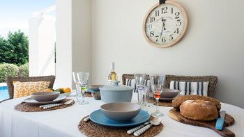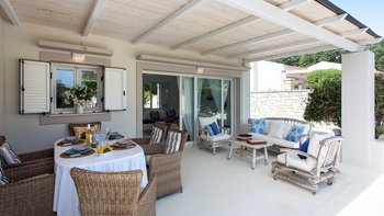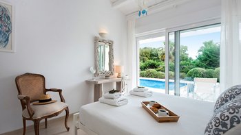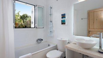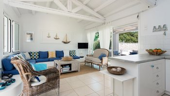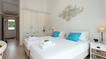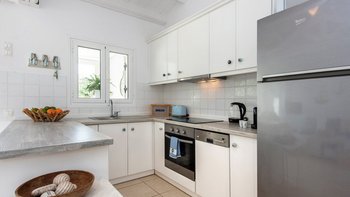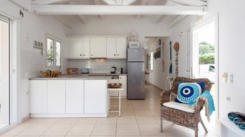 Sie betreten das Anwesen durch die offene Küche und den Wohnbereich, die für ein ausgeprägtes, helles und luftiges Ambiente sorgen, das überall in der Villa präsent ist. Denen beiden Schlafzimmer, eines mit Doppelbett und eines mit zwei Einzelbetten, haben jeweils ein eigenes Bad und ermöglichen es bis zu vier Gästen, den vielen Komfort der Villa zu genießen.