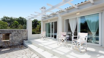 Pebbles ist eine gemütliche und moderne Villa mit zwei Schlafzimmern auf Korfu, nur einen kurzen Spaziergang vom nächsten Strand entfernt.