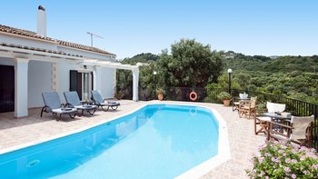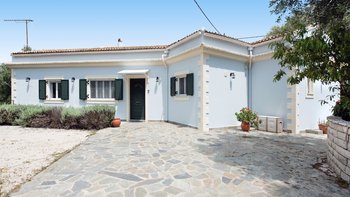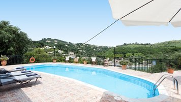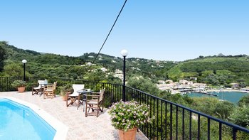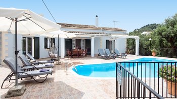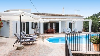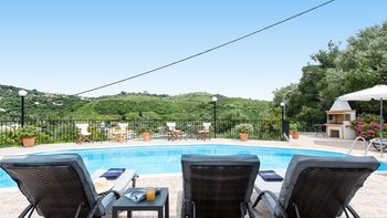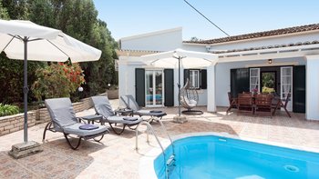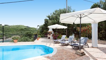 Umgeben von einem natürlichen Schatten versilberter Olivenbäume und mit Blick auf den Hafen von St. Stephano, nur einen kurzen Spaziergang entfernt, ist diese Familienvilla auf Korfu kühl, ruhig, komfortabel und praktisch.