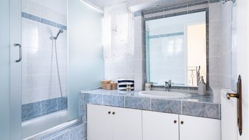 Im Obergeschoss befinden sich zwei weitere Schlafzimmer – ein Doppel- und ein Zweibett-Schlafzimmer, die sich ein Bad teilen, was dieses Anwesen perfekt für einen kleinen Familienurlaub macht. Draußen gibt es eine charmante gepflasterte Terrasse mit einer Außenküche mit eingebautem Grill und Sitzbereich im Freien sowie ein großer Privater Pool mit Liegestühlen.