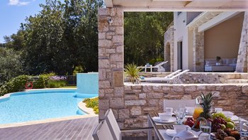 Das Innere der Villa ist exquisit gestaltet und wunderschön eingerichtet. Wenn Sie durch den OFFENER GRUNDRISS Wohn- und Essbereich, ergänzt durch die voll ausgestattete Küche, betreten, werden Sie sich sofort wie zu Hause fühlen. Jedes der vier Schlafzimmer der Villa verfügt über ein eigenes Bad, während die beiden Schlafzimmer im Erdgeschoss auf die Terrasse hinausgehen. Im Obergeschoss öffnen sich die beiden Schlafzimmer auf einen Balkon mit eigenem Panoramablick über Korfu.