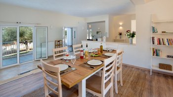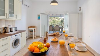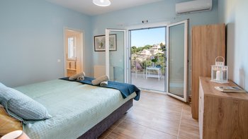 Dieses zweistöckige Haus in Kassiopi befindet sich in zentraler Lage in Korfus charmantem Fischerdorf. Des Anwesen ist geräumig, frisch und modern – und eine gute Wahl für eine Familie, mit drei großzügigen Schlafzimmern, die 6 Schlafmöglichkeiten bieten. Jedes der Zimmer verfügt über den Luxus eines eigenen Bades; Die Master-Suite verfügt über eine separate Badewanne und eine Regendusche, während ein weiteres der Doppelzimmer zu einem Zweibett gemacht werden kann, wenn es besser passt. Jedem Zimmer ist sehr modern, in neutralen Farbtönen für maximales Licht eingerichtet und mit Zugang zu einer möblierten Außenterrasse für zusätzlichen Genuss. Die grauen und weißen Farbtöne setzen sich in den stilvollen Wohnbereichen im Erdgeschoss fort – entworfen mit maximalem Komfort, gibt es ein sehr geräumiges Wohnzimmer mit zwei separaten Sofas, einem Sessel und Fenstertüren, die auf die PRIVATER POOL Terrasse führen. Dessen Erdgeschoss ist mit einem modernen Esszimmer und einer High-Spec-Küche komplettiert, mit viel Platz zum Schneiden und einer wunderschönen zentralen Insel, es gibt auch Zugang zu einer zusätzlichen Terrasse im Freien. Draußen verfügt die Villa über einen großen privaten Swimmingpool und es stehen Liegestühle und Hüpfburgen zur Verfügung. Villa Abelia ist nur einen kurzen Spaziergang von den Bars und Restaurants in Kassiopi entfernt, aber für eine Abwechslung gibt es Tavernen und Wassersportmöglichkeiten in Avlaki, nur 2,2 km entfernt. Zwei Kiesstrände (Soukia und Kalamionas) sind beide zu Fuß von der Villa entfernt.