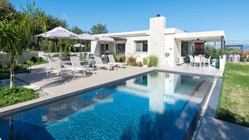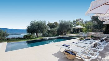 Villa Amavi ist ein stilvoller Rückzugsort mit drei Schlafzimmern auf Korfu, der Privatsphäre, Abgeschiedenheit und einen atemberaubenden 180-Grad-Blick über das Wasser in Richtung Albaniens Berge verspricht.