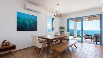 Die Villa bietet schöne Wohnbereiche im Freien, darunter ein Esstisch im Freien, ein Wohnbereich und ein Privater Pool, sowie Tischtennis und ein Billardtisch. Deren Villa liegt ideal in der Nähe des Kerasia Strandes, einem atemberaubenden Kieselstrand mit Sonnenliegen, einer Taverne und einem Café. Deren Villa ist auch nur eine kurze Autofahrt von Restaurants in St. Stephano entfernt. Obwohl das Haus über eine ziemlich steile Zufahrtsstraße erreichbar ist, bietet es eine Aussicht, die die Anstrengung bei weitem überwiegt.