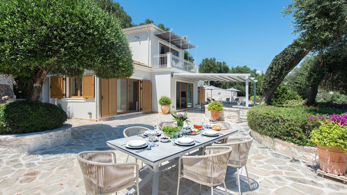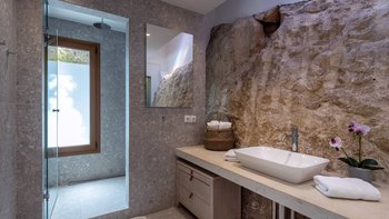 Die wunderschöne Villa Melina besticht durch ihr luxuriöses und zeitgemäßes Interieur und das elegante Äußere. Perfekt auf dem exklusiven Hügel oberhalb von St. Stephano gelegen und nur 10 Minuten zu Fuß über einen schattigen, unebenen Weg zu den Bars und Restaurants entfernt, sonnt sich die Villa Melina in einer wunderschönen natürlichen Umgebung mit gepflasterten und in die Felsen gestuften Terrassen, umgeben von Olivenbäumen und blühenden Sträuchern. Ein bequemer, schattiger Sitzbereich mit Sitzgelegenheiten und einer ausziehbaren Markise überbrückt die Lücke zwischen dem Haus und seinem Infinity-Pool. Dessen erster der beiden stilvoll eingerichteten Essbereiche wird von einem in den Felsen eingebauten Grill serviert. Der Infinity-Pool bietet einen spektakulären Blick auf die Bucht von St. Stephano und ein schattiger Essbereich wurde hinter dem Pool hinzugefügt, um die Aussicht beim Essen im Freien zu genießen.