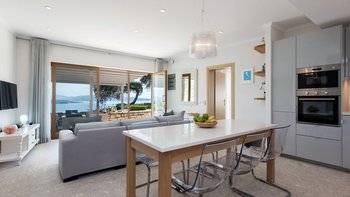 Im Inneren wurde die Villa sorgfältig renoviert und in raffinierten Cremes, Grau- und Blautönen neu eingerichtet. Dessen kühle Farbpalette ergänzt das moderne Styling und den luftigen offenen Wohnbereich, der eine neue, geräumige, moderne Küche, Ess- und Sitzbereiche umfasst. Ebenfalls im Erdgeschoss befinden sich ein Doppelschlafzimmer mit neuem, ebenerdigem Duschbad und ein Zweibettschlafzimmer mit eigenem, ebenerdigem Duschbad (ebenfalls mit einer Tür, die zum Poolbereich führt). Im Obergeschoss öffnet sich das Hauptschlafzimmer zu einer großen Terrasse mit Sitzbereich und Blick auf das Meer und St. Stephano, und das neue Bad umfasst eine ebenerdige Dusche und ein eigenes und separates Bad. Wassersport, Nachtleben und Restaurants sind in den nahe gelegenen Dörfern leicht zu erreichen.