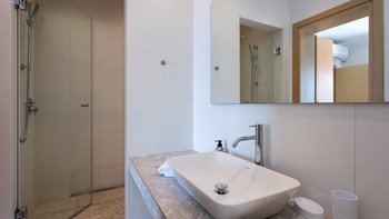 Bitte beachten Sie, dass die Verwendung von P20 und Ultrasun Sonnencreme in der Villa Melina verboten ist, da diese besondere Marke sehr starke Flecken auf Bettwäsche, Handtüchern und Sonnenliegen verursachen kann und die Villa neu möbliert ist. Denen Eigentümer der Villa bitten daher, P20 und Ultrasun Sonnencreme nicht mit in den Urlaub zu nehmen und sie nicht in der Villa oder in einem der Außenbereiche zu verwenden.