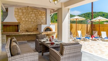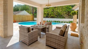 Villa Meraki ist eine atemberaubende, moderne Villa in einer fantastischen Lage direkt im Herzen von St. Stephano, nur wenige Minuten zu Fuß von einer Auswahl an Restaurants, Geschäften und dem Strand entfernt. Dieser perfekt dimensionierte Villa im Zentrum des Dorfes verfügt über einen schönen PRIVATER POOL und eine attraktive überdachte Terrasse mit Essen im Freien, Grill und Pizzaofen für Mahlzeiten im Freien und Sundowners. Dieser Villa ist wunderschön und hochwertig eingerichtet und verfügt über ein offenes Wohnzimmer und eine stilvolle Küche mit direktem Zugang ins Freie, ein Schlafzimmer mit Doppelbett und einen Hauswirtschaftsraum im Erdgeschoss. Alle drei Schlafzimmer verfügen über ein eigenes Bad mit Dusche. Im ersten Stock befindet sich ein wunderschönes Hauptschlafzimmer mit Doppelbett, das zu einem großen privaten Balkon führt, und ein Schlafzimmer mit Doppelbett mit eigener Terrasse. Der Strand von St. Stephano ist nur fünf Minuten zu Fuß von der Villa entfernt, die Strände von Kerasia und Avlaki sind nur eine kurze Autofahrt entfernt und Kassiopi mit all seinen Annehmlichkeiten nur 5,8 km von der Unterkunft entfernt.
