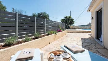 Die Villa Ninablue bietet eine seltene Mischung aus Privatsphäre, Panoramablick auf das Meer und einfachen Zugang zur Nordostküste von Korfu, alles in einem Hideaway mit einem Schlafzimmer für totale Entspannung.