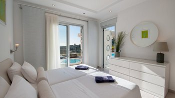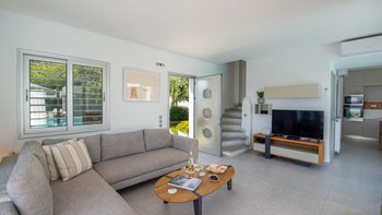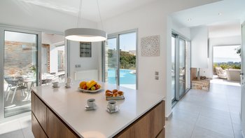 Das moderne Design spiegelt sich im stilvollen Interieur wider, das kühl und lichtdurchflutet ist. Deren High-Spec-Küche geht in das geräumige Wohnzimmer über, das sich auf die Terrasse öffnet. Des Esszimmer der Villa verwischt die Kanten des Lebens im Innen- und Außenbereich und hat eine ganze Wand aus Schiebetüren, die es in einen überdachten Essbereich mit eingebautem Grill verwandeln. Deren Villa verfügt über drei geräumige Schlafzimmer; Im Obergeschoss öffnet sich die Master-Suite zu einem schönen Balkon mit bequemen Sitzgelegenheiten und weitem Blick auf das Meer und St. Stephano.