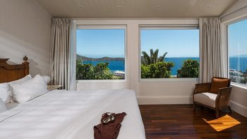 Die Presidential Spa Villa ist so privilegiert, wie der Name schon sagt, mit einem gut ausgestatteten Fitnessraum, einer Sauna und einem Hammam zu den privaten Einrichtungen. Elounda Gulf Villas liegen auf einem Hügel mit Blick auf die wunderschöne Mirabello-Bucht und bieten einige der luxuriösesten Unterkünfte der Insel. Familiengeführtes und preisgekröntes, Mitglied der „Small Luxury Hotels of The World“ und in den „101 Best Hotels of the World“ gelistetes Boutique Villa – Hotel ist nur einen kurzen Spaziergang vom Felsenbaden im Meer entfernt, nur 10 Minuten Fahrt vom hoteleigenen Strandclub mit Sandstrand und in der Nähe von Geschäften, Tavernen und der schönen Uferpromenade von Elounda. Eine große Auswahl an Wassersportmöglichkeiten ist in der Nähe möglichund Zu den Einrichtungen auf dem Gelände gehören ein fantastischer Pool mit Jacuzzi, ein Restaurant und eine Bar und das Elixir Spa mit Massageraum, Sauna, Dampfbad und Fitnessraum.