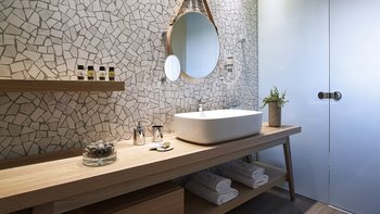 Die Außenbereiche stehen im Mittelpunkt des Erlebnisses. Ein Infinity-Pool blickt direkt auf die Ägäis, während private Terrassen einen ungestörten Blick auf die beiden Halbinseln bieten, die die Bucht umrahmen. Vom Rand des Gartens aus führt ein kurzer Weg direkt zum Strand, wo Kieselsteine zu feinem Sand verschmelzen, wenn man ins Wasser tritt. Deren Küste ist auch reich an Wildtieren, mit Falken, Reihern und Sandläufern, die oft in der Nähe gesehen werden.