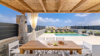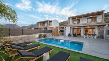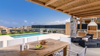 In der Nähe eines Sandstrandes und nahe gelegener Geschäfte und Restaurants erwartet Sie die Villa Thalia, ein modernes Haus für sechs Personen in Ostkreta.