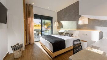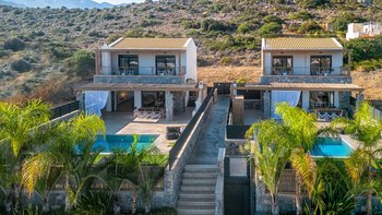 Im Obergeschoss befinden sich zwei weitere moderne Schlafzimmer, beide mit eigenem Bad und Zugang zu einem schönen gemeinsamen Balkon mit Blick auf den Pool. Große Gruppen können neben der Schwestervilla Thea nebenan gemietet werden.