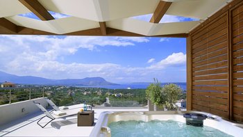 Im Außenbereich befinden sich eine Hängematte auf der Sonnenterrasse und ein Essbereich im Freien mit Blick auf den Infinity-Pool. Der Aoriete liegt 300 m vom Dorfplatz Kokkino Chorio, 1,5 km vom unberührten Strand Koutalas und 4 km vom lebhaften Almyrida-Strand mit Wassersportmöglichkeiten, Cafés und Fischtavernen entfernt.