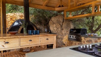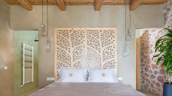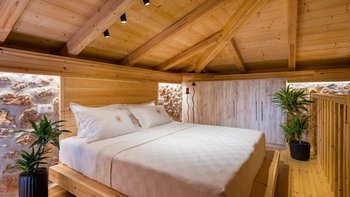 Die Villa Demeter ist ein atemberaubendes Anwesen am Hang der kretischen Berge. Deren Villa zeichnet sich durch ihr stilvolles Dekor sowie ihre ruhige mediterrane Kulisse aus. Deren Villa erstreckt sich über eine Etage mit moderner minimalistischer Ästhetik, um ein luxuriöses und komfortables Urlaubserlebnis zu bieten, mit komplett Holzmöbeln und Steinmauern. Der offene Grundriss Wohn-, Ess- und Küchenbereich ist unglaublich geräumig und bietet den perfekten Ort zum Entspannen und Essen nach einem Tag in der Gegend. Deren Küche ist komplett ausgestattet, während der Wohnbereich einen extravaganten Kronleuchter enthält, der über dem übergroßen Sofa hängt. Ein kleiner Büroraum mit Schreibtisch und Hocker befindet sich am Eingang des Wohnzimmers. Das Hauptschlafzimmer ist geräumig und luftig, mit einem Badezimmer en Suite, gemütlichen neutralen Farbtönen und direktem Zugang zur Terrasse. Denen beiden Doppelschlafzimmer sind ähnlich eingerichtet und bieten einen herrlichen Blick auf die Berge und eine ruhige Atmosphäre.