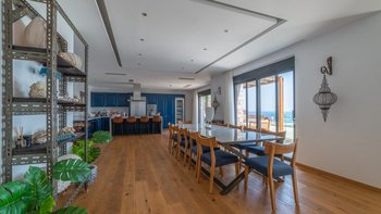 Die geräumige und moderne Villa Gaea ist eine schöne Familienvilla auf Kreta, die perfekt für einen atemberaubenden Blick auf das Meer und die Insel Spinalonga geeignet ist. Im Inneren befindet sich ein großer Wohn-, Ess- und Küchenbereich, der wunderschön in blauen Farbtönen gestaltet ist und auf den Ozean blickt. Im Obergeschoss befinden sich zwei Doppelschlafzimmer mit Bad en suite, die sich auf einen Balkon mit einer unglaublichen Aussicht öffnen. Im unteren Erdgeschoss befinden sich vier weitere schöne Schlafzimmer, von denen zwei mit eigenem Bad, einer Sitzecke und einer großen Auswahl an Fitnessgeräten ausgestattet sind.