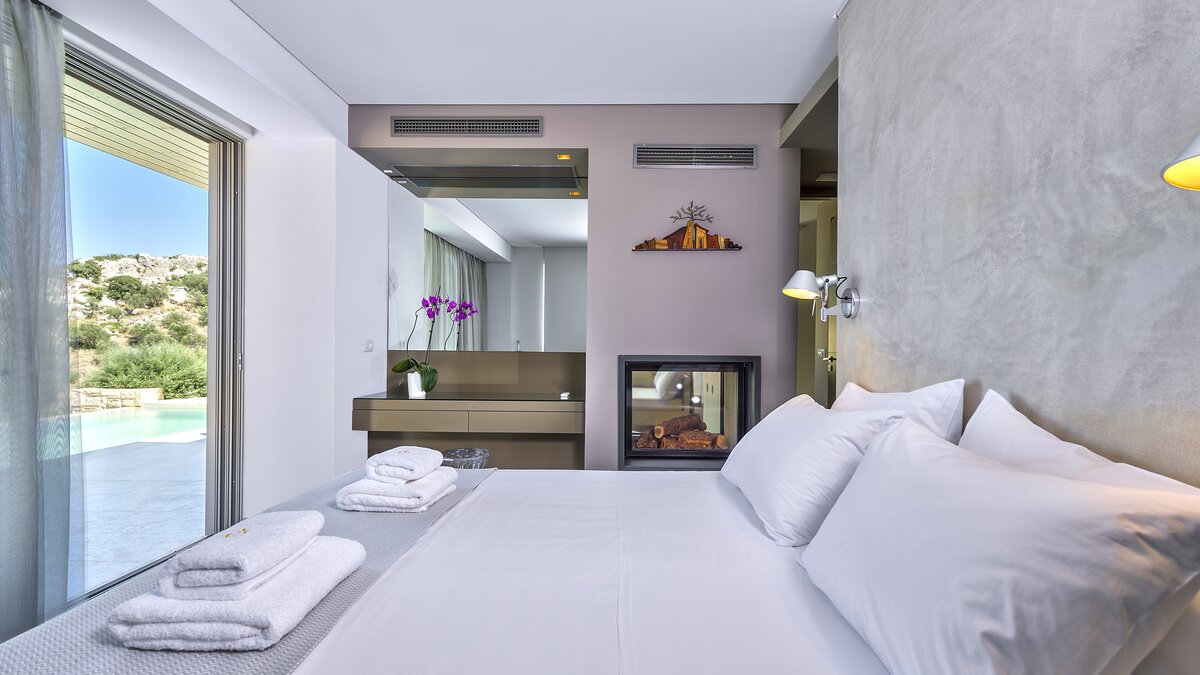 Die Villa Luxuria liegt auf einem ruhigen Hügel oberhalb von Agios Georgios und bietet einen atemberaubenden Blick auf den Sonnenaufgang über die Ägäis und die ungezähmte Schönheit der Nordwestküste Kretas. Inspiriert von der Insellandschaft verbindet das Design hellen kretischen Stein mit warmem Holz und weitläufigem Glas und schafft so eine elegante Harmonie zwischen Innen und Außen.
