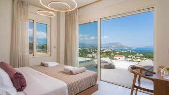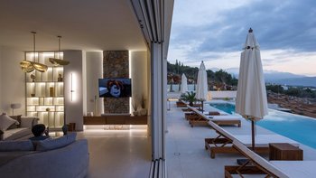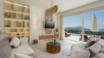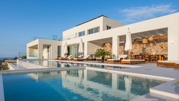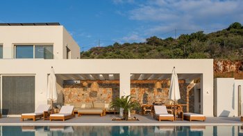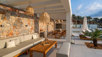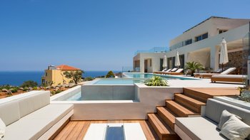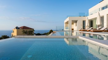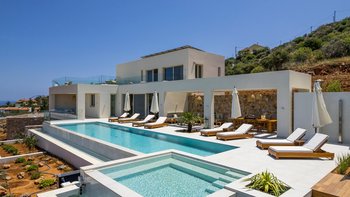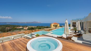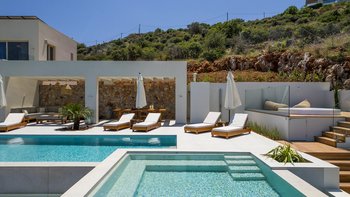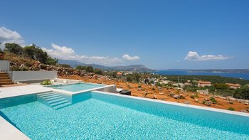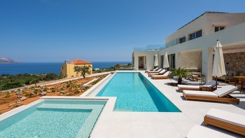 Mit zwei beheizten Pools, einem Jacuzzi, einem Indoor-Kino und einem atemberaubenden Meerblick ist die Villa Rhea für einen verwöhnten und entspannten Aufenthalt an der Küste Kretas konzipiert.