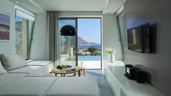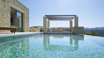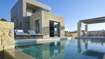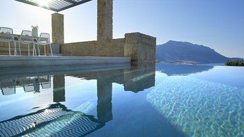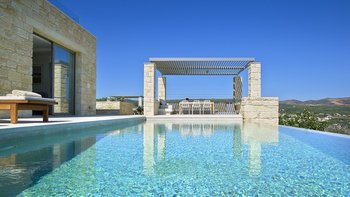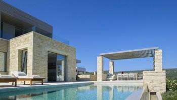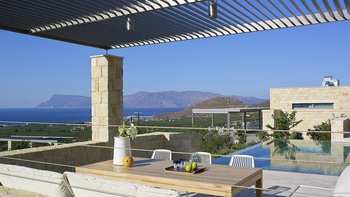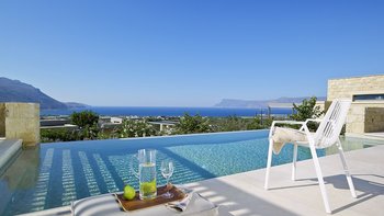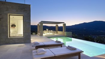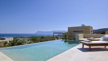 Die Villa Royal ist ein modernes Refugium in Hanglage mit herrlichem Meerblick und bietet eine ruhige Abgeschiedenheit und einfachen Zugang zu den Stränden und der zerklüfteten Küste im Westen Kretas.