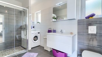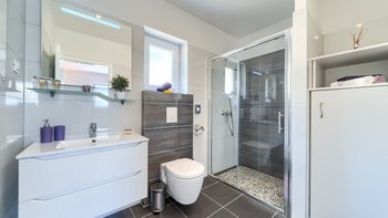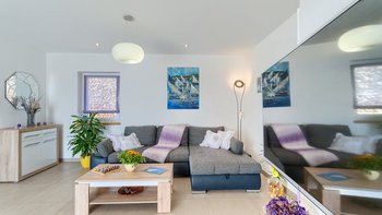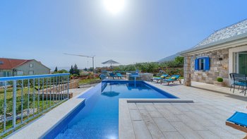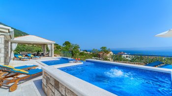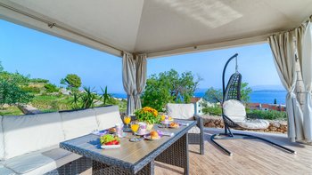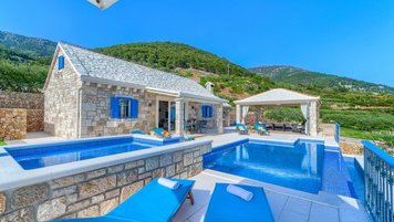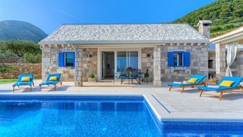 Freunde und Familien werden die Villa Lillie lieben, ein wunderschönes Steinhaus mit atemberaubendem Blick auf die Küste. Deren Innere der Villa ist hell und sauber, in neutralen Farbtönen gehalten und mit schönen lilafarbenen Möbeln versehen. Der offene Wohnbereich verfügt über einen komfortablen Sitzbereich mit Fernseher und Möglichkeit zum Essen im Innenbereich, während Schiebetüren auf die Terrasse mit einem zweiten Esstisch öffnen, falls die Gäste ihre Mahlzeiten lieber im Freien genießen möchten. Eine speziell gebaute Pergola bietet an sonnigen Tagen willkommenen Schatten und ist mit komfortablen Rattansitzen neben einer Außenküche und einem Grill und Grill ausgestattet. Ein beheizter Pool mit freiem Meerblick neben einem eigenen Kinderbecken und einem kleinen Kinderspielplatz befindet sich im Garten.