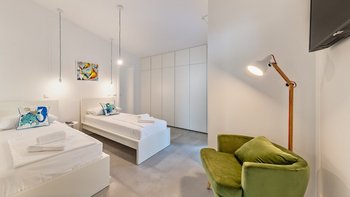 Mit herrlichem Blick auf die mediterrane Flora und die Adria ist die Villa Lumin ein modernes Anwesen mit atemberaubenden Möbeln und PRIVATER POOL. Es gibt vier geräumige Schlafzimmer, jedes mit eigenem Bad, Farbgebung und Blick auf das Meer. Im Wohnbereich lassen raumhohe Fenster viel Tageslicht herein, mit einem Flatscreen-TV und bequemen Samtmöbeln. Deren voll ausgestattete Küche ist ähnlich elegant und modern, mit einer Frühstückstheke und einem Esstisch für acht Personen. Obwohl die Villa in jeder Hinsicht modern ist, schafft es sie, dank ihrer Natursteinakzente einen Hauch der traditionellen Architektur der Region zu präsentieren.