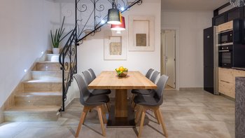 Die Villa Violet ist ein traditionelles Steingebäude mit modernen Elementen und verbindet mühelos Altes und Neuem. Der Wohn- und Essbereich ist geräumig und offen gestaltet und gleichzeitig komfortabel und gemütlich. Ein Ecksofa lädt zum Entspannen abseits der Mittagssonne ein und eine stilvolle Küche bietet einen Indoor-Essbereich. Drei charmante Schlafzimmer verfügen jeweils über ein Duschbad en suite; das Doppelhaus im Erdgeschoss hat auch direkten Zugang zur Poolterrasse.