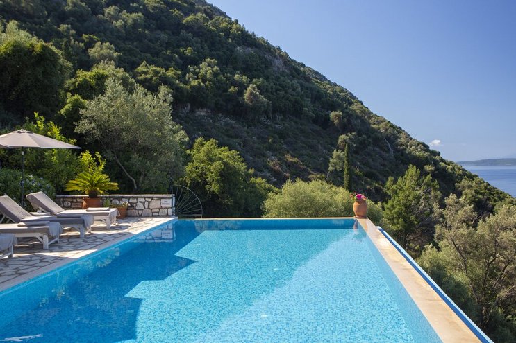 Die stilvolle und moderne Villa Athena ist ein entspannender Rückzugsort auf Lefkada, mit Panoramablick auf vorgelagerte Inseln und in der Nähe fabelhafter Restaurants.