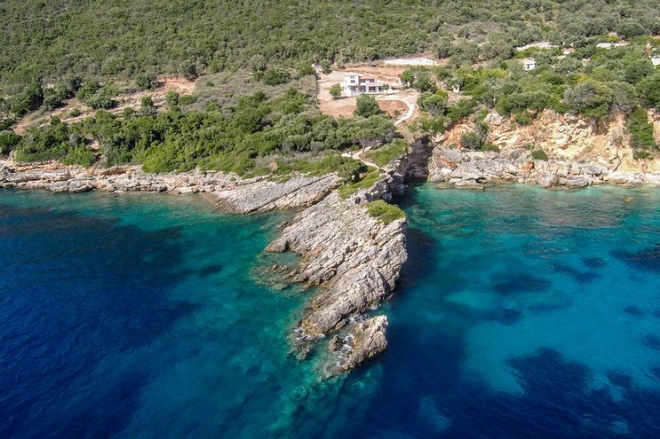 Eine wunderbar komfortable Luxusvilla in Lefkada, mit herrlichem Meerblick von der abgeschiedenen Lage direkt am Meer, direktem Zugang zu zwei Stränden und Bootsanleger direkt darunter.