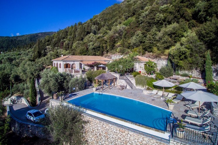 Innen und außen wunderschön gestaltet, ist diese moderne Villa mit atemberaubendem Blick über die Inseln Skorpios nur 450 m von einem hübschen Kiesstrand entfernt.