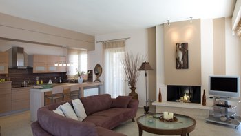 Die Villa Fotina liegt auf einem Hügel über dem hübschen Passa-Strand an der Ostküste von Lefkada und bietet einen freien Blick über das Ionische Meer auf die Inseln Sparti, Madouri, Skorpios und Meganissi. Der Strand ist nur 450 m zu Fuß entfernt, mit einem Restaurant ein wenig weiter. Deren charmante Küstenstadt Nidri ist weniger als 3 km von der Unterkunft entfernt, während die Stadt Lefkas und der Yachthafen nur eine kurze Autofahrt entfernt sind. Deren Villa ist hell und luftig und verfügt über große Panoramafenster und Glasschiebetüren, die die Räume mit Licht durchfluten und die unglaubliche Aussicht optimal nutzen. Der Haupteingang führt direkt in ein geräumiges, offen geschnittenes Wohnzimmer mit Wohnzimmer, Essbereich und.