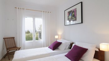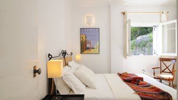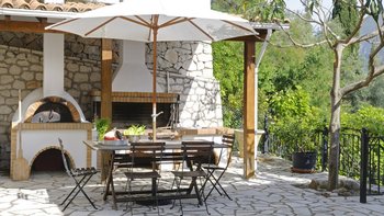 Das gemütliche Wohn-/Esszimmer mit seinen großen Ledersofas öffnet sich auf einen großen möblierten Balkon und einen gepflasterten Grillplatz mit Holzofen. Ein Kochservice durch das Dienstmädchen ist auf Anfrage ebenfalls verfügbar. Zusätzlich zu den vier Schlafzimmern verfügt Kalithea über ein eigenständiges Studio auf der unteren Etage, das die Unterkunft flexibel gestaltet. Ein Weg von der Villa führt zum Strand, etwa zehn Minuten zu Fuß, und Restaurants sind fünf Minuten Fahrt von der Villa entfernt.