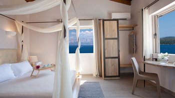 Diese hübsche Villa ist perfekt für einen Strandurlaub gelegen, mit dem idyllischen kleinen Passa-Strand nur 400 Meter von der Unterkunft und einem Restaurant nur ein wenig weiter. Kallisto liegt am Fuße eines Hügels, weniger als 2 km von Perigali entfernt und ist eine von vier Villen. Der örtliche Architekt hat eine wunderbare Mischung aus Tradition und Moderne geschaffen, die zu einer attraktiven und äußerst komfortablen Immobilie führt. Es gibt ein helles und geräumiges Wohnzimmer mit Essecke und Küche, das sich auf eine sonnige Terrasse öffnet. Auf derselben Etage befindet sich das einfach, aber atemberaubend dekorierte Hauptschlafzimmer mit eigenem Bad und Himmelbett, das durch breite Schiebetüren auf eine möblierte Terrasse führt.