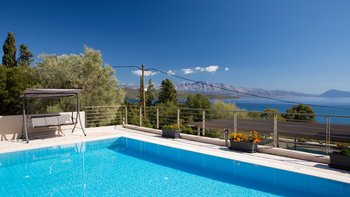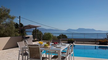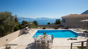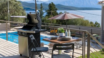 Die Villa Timo liegt oberhalb des Hafendorfs Nikiana und verbindet einen weiten Blick auf das Meer mit einer entspannten, einladenden Atmosphäre – ein entspannter Rückzugsort nach Lefkada für lange Sommertage.