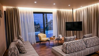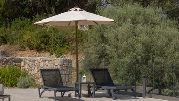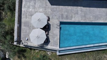 Der Außenbereich ist wirklich das Herzstück der Villa Dahlia. Im Mittelpunkt steht der große Infinity-Pool, umgeben von verschiedenen Entspannungsplätzen mit Liegestühlen und bequemen Sesseln. Ein Essbereich im Freien bietet den perfekten Rahmen für unvergessliche Mahlzeiten mit atemberaubender Aussicht. Von diesem Aussichtspunkt aus können die Gäste die Ostseite der Insel, das weite Ionische Meer, die Akarnanische Küste und die majestätischen Berge von Epirus bewundern. Deren Lage der Villa zwischen Oliven-, Mandel- und Zypressenbäumen, mit aromatischen Kräutern und Blumen, die die Dächer und Blumenbeete schmücken, schafft ein sensorisches Erlebnis, das die Gäste mit der natürlichen Schönheit der Insel verbindet.